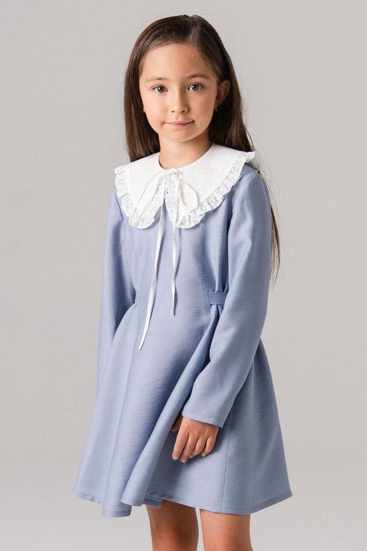 Нежное платье голубого цвета с белым воротником