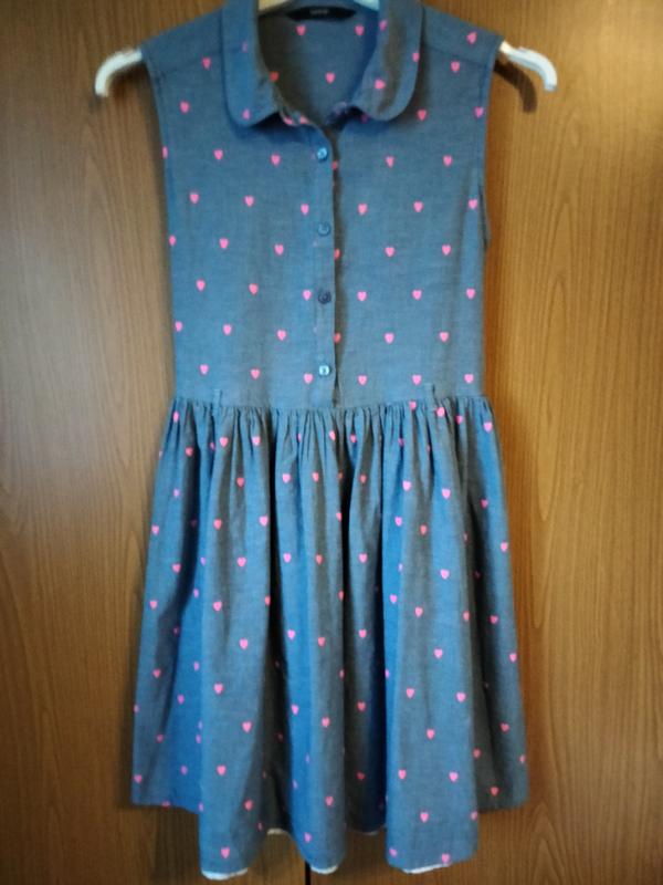 Котонова сукня на дівчинку в розмірі 140-146,має підклад.Плаття в гарному стані,виглядає стильно та сучасно.Заміри: довжина 77 см, полу обхват грудей 31 см,полу обхват талії 31 см.