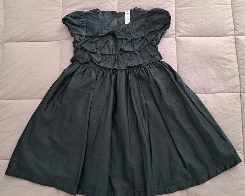 Хорошее классическое платье на девочку Замеры: Длина- 61,5 см. Окружность под руками - 63 см. По спинке пуговицы По комоде воланы Платье полностью на подкладе с добавлением фактина, что делает его немного пышным