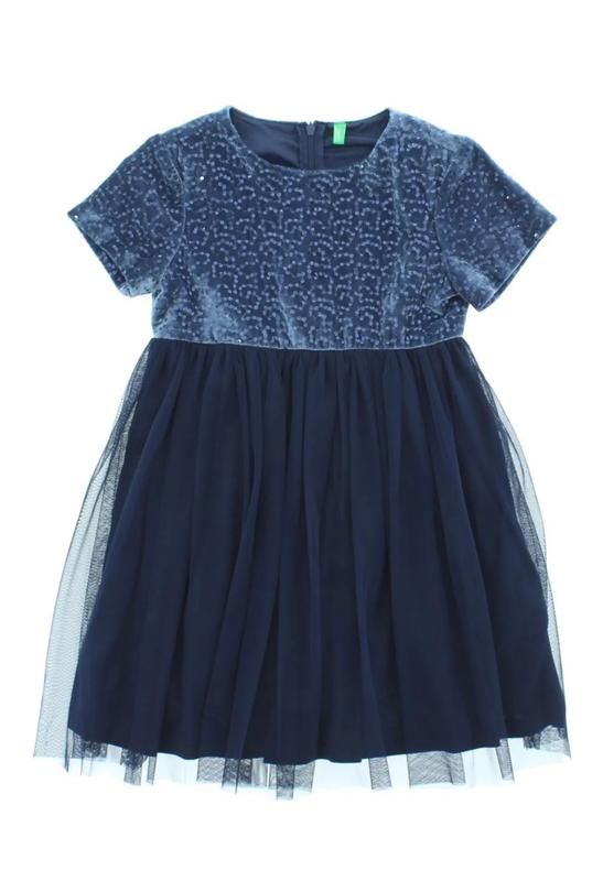 Синя сукня від United Colors of Benetton верх велюр в паєтки, фатинова спілниця Розмір 140 На 8-9 років