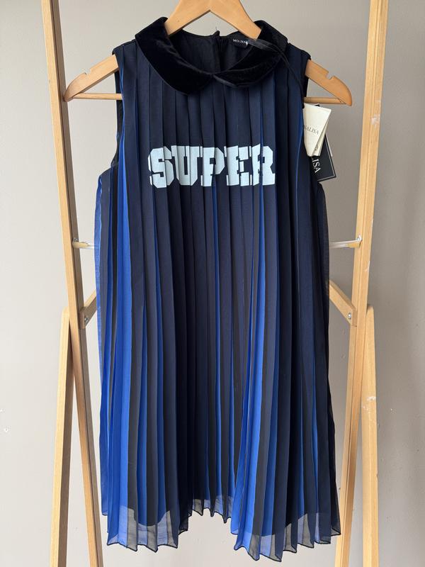 Нова з бірками, але по сукні є зачіпки (див фото) через фактуру сукні не критично, під пахвами 42 см, довжина від плеча 77 см