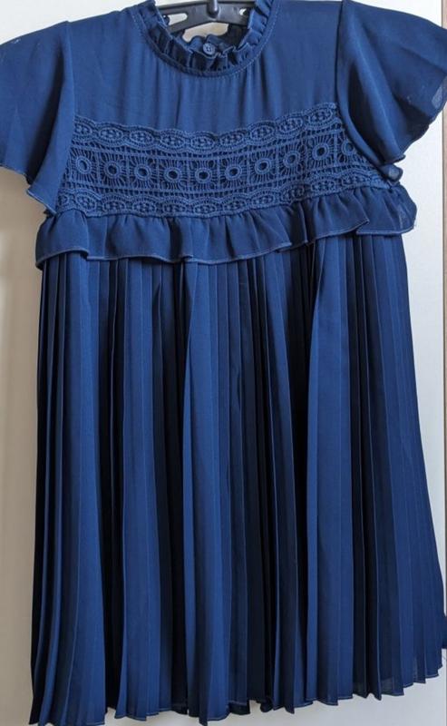 Новая, без бумажной бирки. Очень красивое качественное платье плиссе на рост 140-146, будет дольше. 💙 длина 76 💙 ширина подмышками 36 талия высокая, поэтому далее идет свободный крой