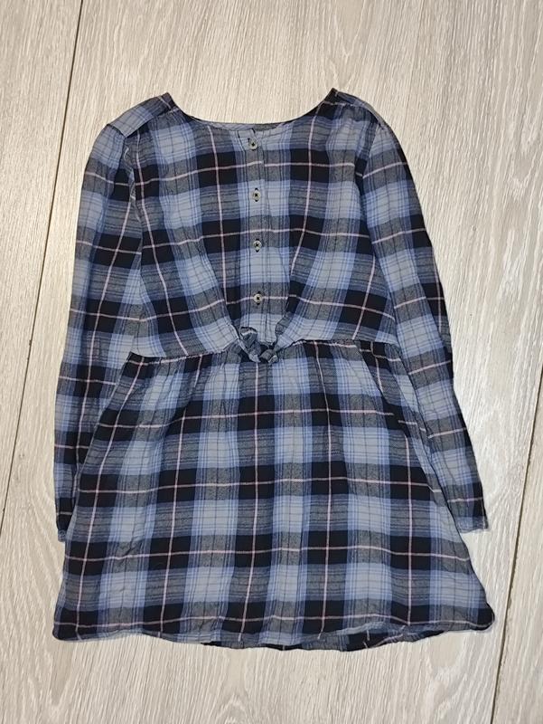 Фирменное, фланелевое платье с длинными рукавом на 8-9 лет. Спереди застегивается на пуговицы. Состав 100% хлопок. Состояние отлично Замеры: длина по спинке от плеча 63 см, ширина между подмышками 37,5 см, плечи 31 см, рукав от плеча 47,5 см, по внутреннему шву 35 см