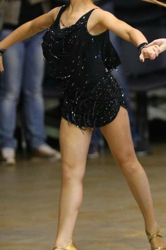 Сукня для латини. Чорна зі стразами. Професійний пошив. На зріст 140-145