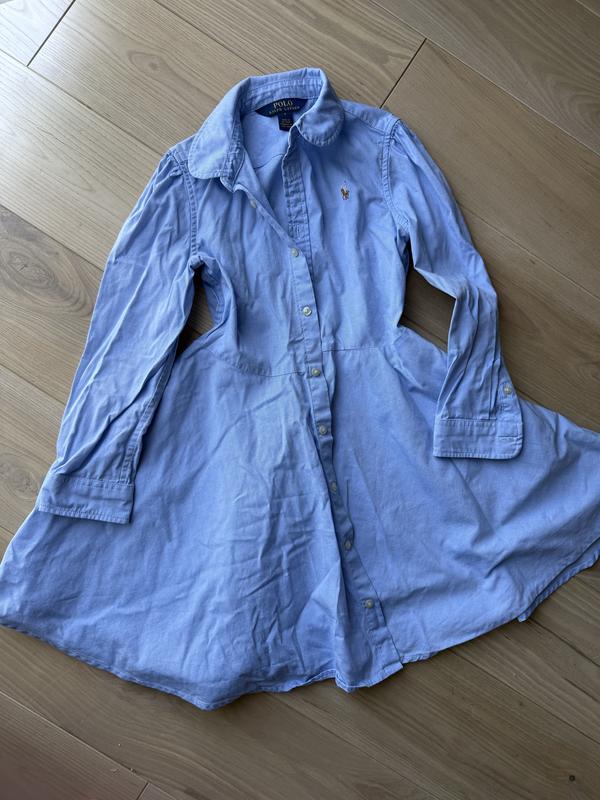 Сукня для дівчинки на зріст 122 приблизно, на вік 6 років, відомого бренду Ralph Lauren, як нова, вдівали в школу пару раз. Ніжний голубий колір, упізнаний бренд. Ідеальний стан. Рукав довжина42, плече 8 Довжина сукні 62, ширина під руками 32, в поясі 28