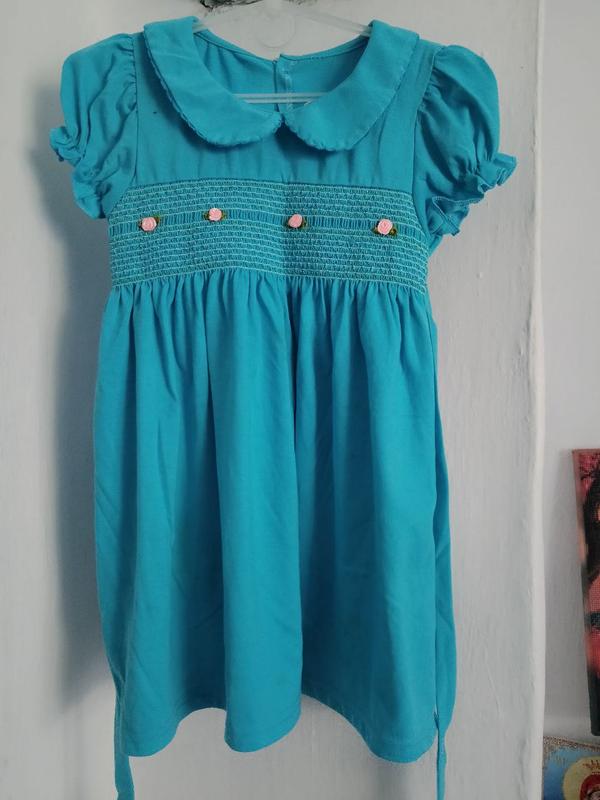 Детское голубое платье с пояском и приклеенными розами на резинке Возраст: 3-4 года Размер: 98-104