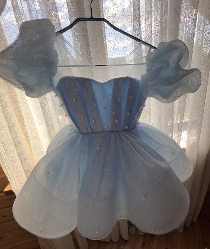 👗 Ніжна блакитна сукня для дівчинки ✨ Одягалася лише один раз – стан як новий! Сукня виготовлена з легкої фатинової тканини з блиском, прикрашена перлинками. Має пишну спідницю та об’ємні рукави, виглядає дуже святково й казково. Підійде для: 🎉 святкових заходів 📸 фотосесій 🎂 дня народження чи будь-якого особливого свята На зріст 117-120💎