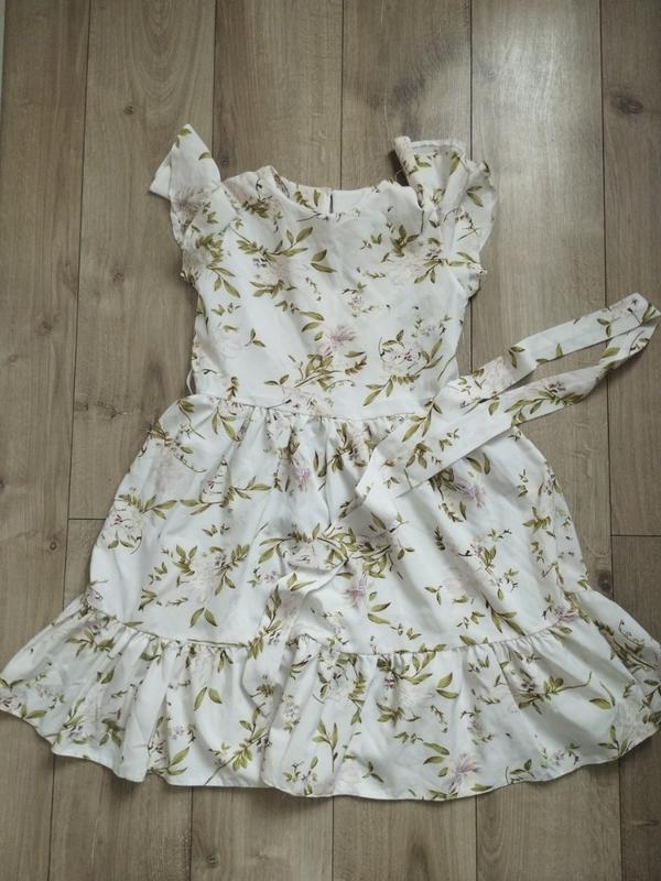 Платье праздничное летнее для девочки на рост 140 см молочного цвета в цветочный принт.