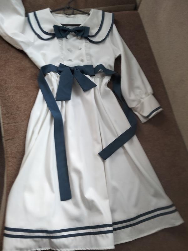 платье для девушки подростка на праздник. декор платья - меньше насыщенный синий цвет с добавлением серого (пастельный) бантик на шпильке (снимается) общая длина 107 полуобхват груди 46 полу охват талии 46 полу охват по низу 90 длина рукава от плеча 53 от плеча до талии 36 (линия талии завышенная) дефект показала на фото Бирки отсутствуют. ткань напоминает креповый трикотаж.