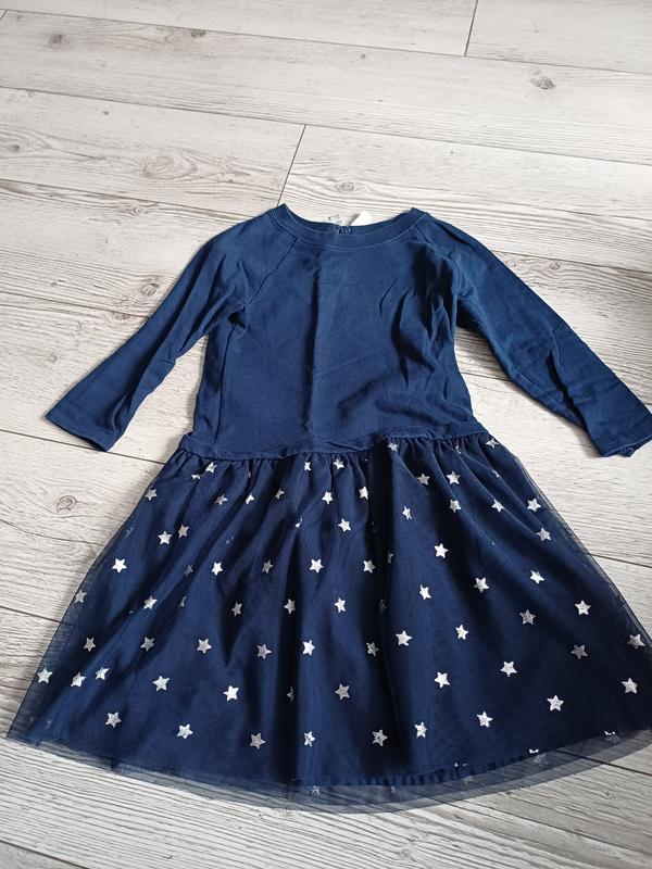 Синее платье для девочек carter's, размери 8 , с серыми звездами