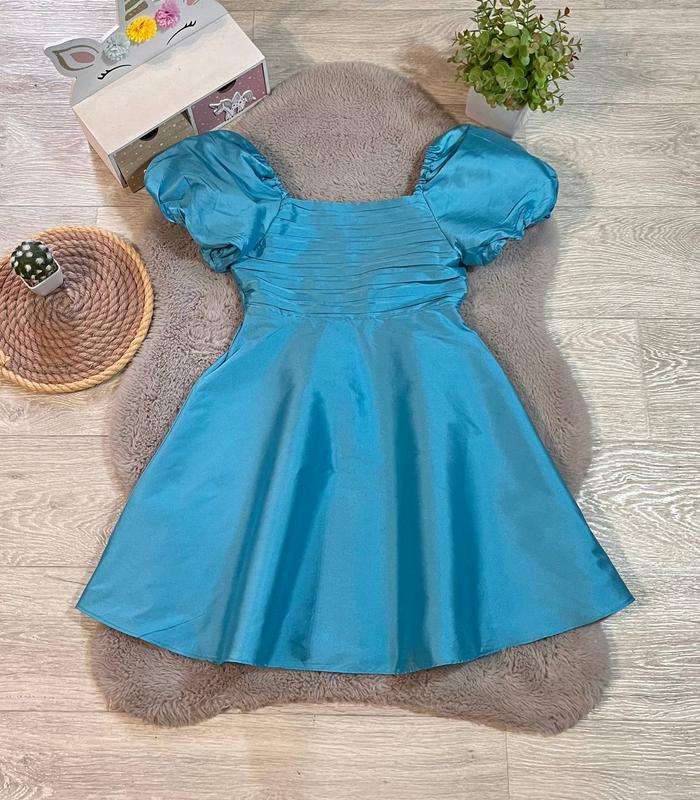 Невероятное платье в отличном состоянии цвет посто Вау! яркая сочная бирюзовая волна качество супер ткань хорошо держит форму, по спинке на молнии размер 7-8р дв 69 пог 33 не тянется