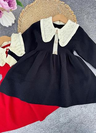 Новинка✨✨✨ Дуже гарна,якісна та тепла сукня 😍 Тканина -плотна машинна в‘язка Неймовірно гарний комірець прикрашений перлинками на заклепках та дуже гарні ґудзики 🥰 Дуже приємна до тіла та тепла 🔥 ✔️Супер якість ✅ Рекомендуємо !Ви будете дуже задоволені🥰 Гарно тягнеться 90 – довжина 50 см, шир 23 см, рукав 33 см (3 шт) 100 – довжина 53 см, шир 24 см, рукав 36 см (3 шт) 110 – довжина 57 см, шир 28 см, рукав 38 см (4 шт) 120 – довжина 59 см, пог 27 см, рукав 41 см (5 шт) 130 – довжина 65 см, шир 27 см, рукав 43 см (5 шт) Замір рукава від плеча Ціна 815 грн
