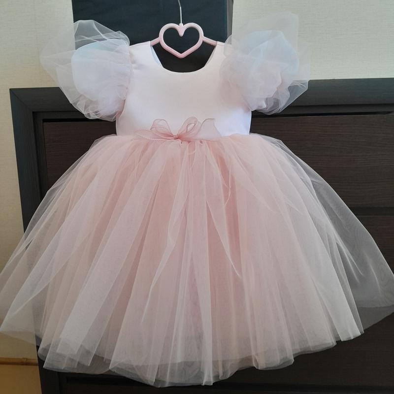 Праздничное платье на девочку с модным рукавчиком фонарик Пышные юбочки из евросетки, атласный лиф. Большой бантик на спинке. Подкладка из натурального хлопка.