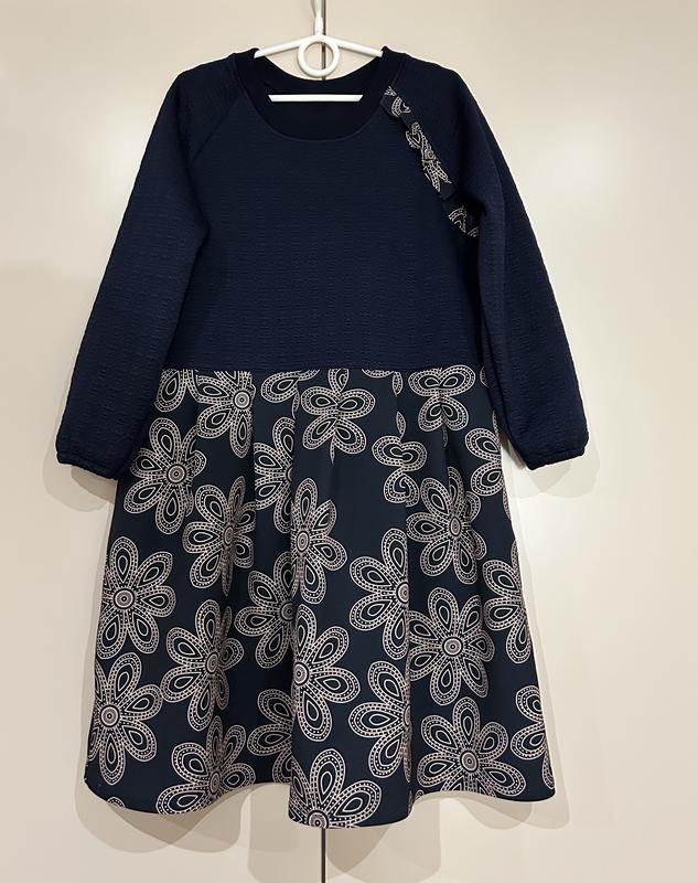 Сукня на 7-8 років. Матеріал трикотаж жаккард. Довжина сукні - 73 см, пог - 38 см, довжина зверху до спідниці - 33 см, довжина спідниці - 40 см, довжина рукава від горловини - 50 см.