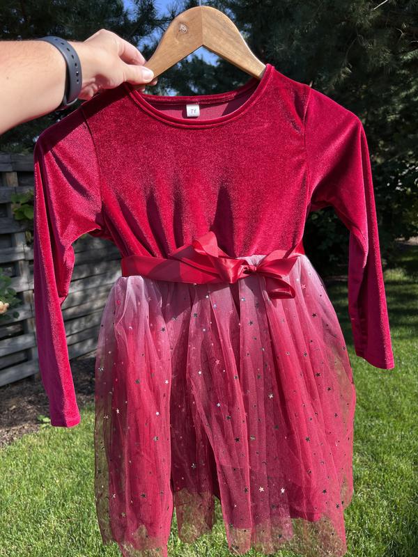 Гарна святкова сукня з велюра, спідниця пишна, вкрита блискучими зірочками. Одягнута 1 раз, майже нова. Розмір 7 років, але раджу на 6 або на маленький зріст