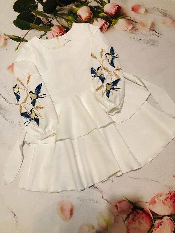 Гарна нарядна сукня тканина костюмка барбі, рукава оздоблено гарною вишивкою зав'язується під поясок Розміри 128-146
