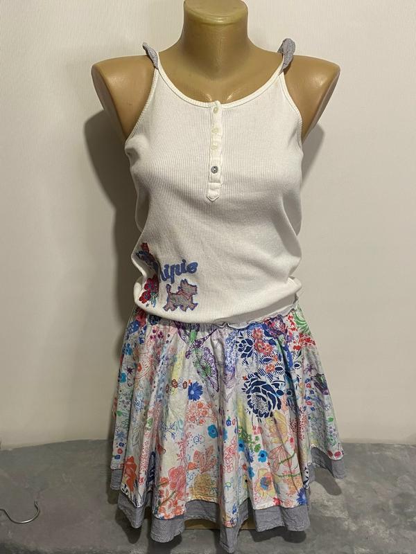 Платье на девочку 10-12 лет рост 140 см фирма Chipie — это французский бренд одежды, известный своим стилем, вдохновленным американской студенческой модой и винтажной эстетикой. Верх-трикотаж хб в рубчик, внизу - двойная хб юбка, коттон 100% ширина в груди 36-42 см ширина в талии 33-38см в бедрах свободно длина 80 см