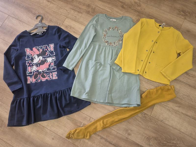 Набором платья Sinsay и кардиган Okaidi в идеальном состоянии. На рост 134-140см, хоть на кардигане написано 128см, но носили когда у нас был рост 134см, на возраст 8-9 лет. Замеры кардигана длина рукава от плеча 46см, ширина 36см, длина от плеча 43см. Длина рукава от плеча зеленого платья 67см, длина рукава от плеча 47см, ширина 35см. Набором за все 450грн, отдельно каждая вещь 200грн.
