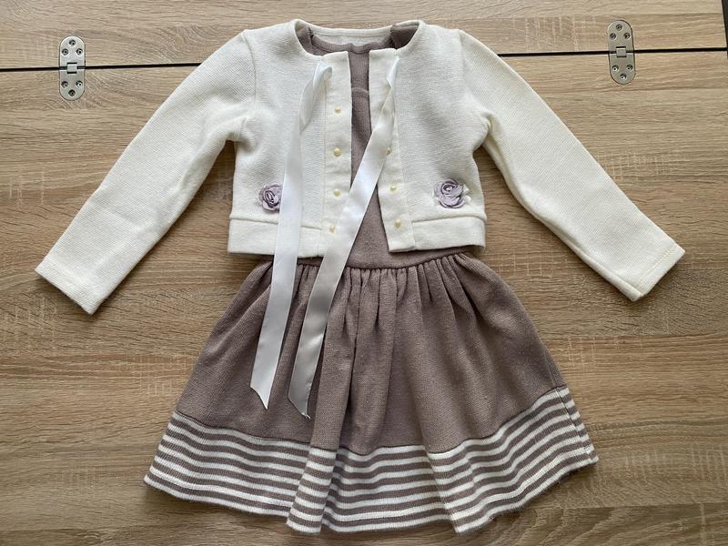 Продам теплу сукню на дівчинку 4-5 років. Довжина сукні - 54 см. Ширина під пахвами - 26 см. Довжина болеро - 27 см. Довжина рукава від плеча - 35 см. Доволі рукава по внутрішньому шву - 27 см.