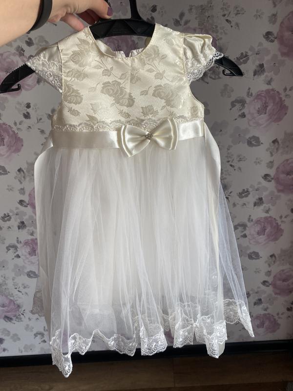 Святкове плаття для дівчинки з фатіном і кружевом. Приблизно на вік 1 рік, 1,5, 2. Довжина плаття- 56 см. Ог. - 27 см. Одягнуте 1 раз. Без дефектів.
