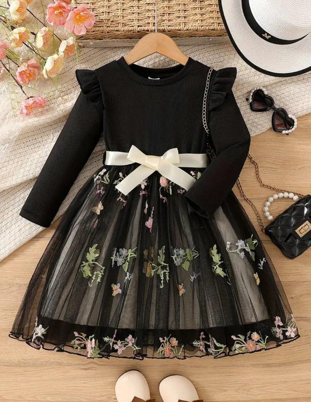 Нарядное черное платье для девочки с вышивкой и фатином, 5-6 лет, 7-8 лет