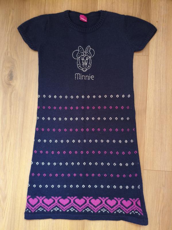 Теплое вязаное платье из Минни. Темно-синего цвета. Состав: 70% акрил, 30% шерсть. Воротник по набору на 10 лет, рост 134-140. Лучше подойдет на худи девочку. Длина 75, пог 35, плечи 29. Состояние отличное, без нюансов. Все стразы на месте.