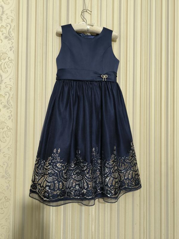 Очень красивое платье для девочки 7-8-9 лет. Стан отличный, юбка пышная. Длина 81, ширина в груди 35, от плеча до талии 27. Сзади связывается на завязки, застежка молния. Пересилаю НП, УП.