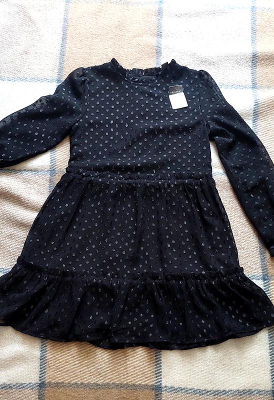 Нова сукня, по бірці 140 можна 134 заміри є на фото. На подкладке. 100% полиэстер. Застегивается сзади на пуговицы. Очень красиво и нарядно смотрится.