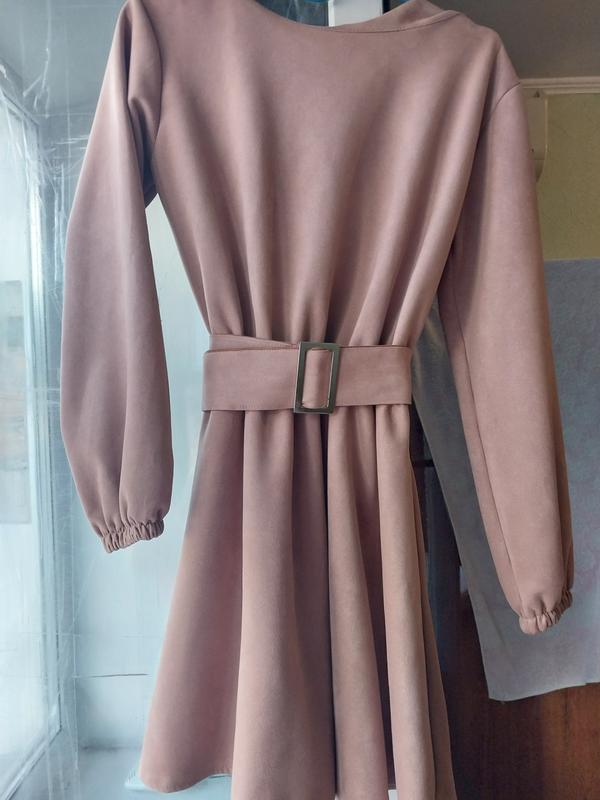 Платье с длинным рукавом, подходящее на ощупь. Очень удобная, не мнется, на поясе резинка+отдельно идет пояс к ней. Цвет персиковый с коричневым отыском,размер 44-46,46-48