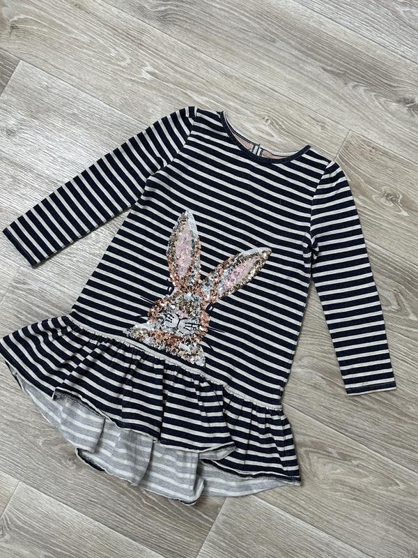 Платье с кроликом Ткань трехнитка петля Состояние супер Monsoon 7-8 лет/128 Длина 61/68. Пог 36. Рукав 42