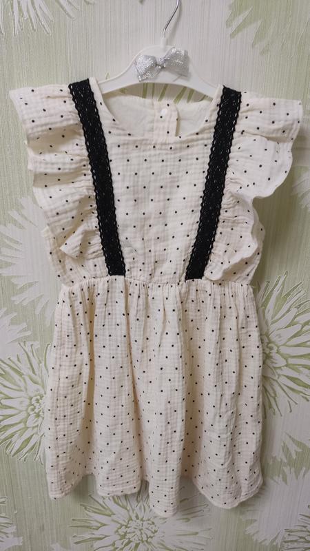 летнее платье для девочки закрывается на спине кнопками имеет черное кружево на груди под низом подкладка ( дополнительная ткань) размер 6 лет подходит на 5-7 лет в зависимости от настроек ребенка ориентируйтесь по замерам замеры: длина- 59см ширина - 29см