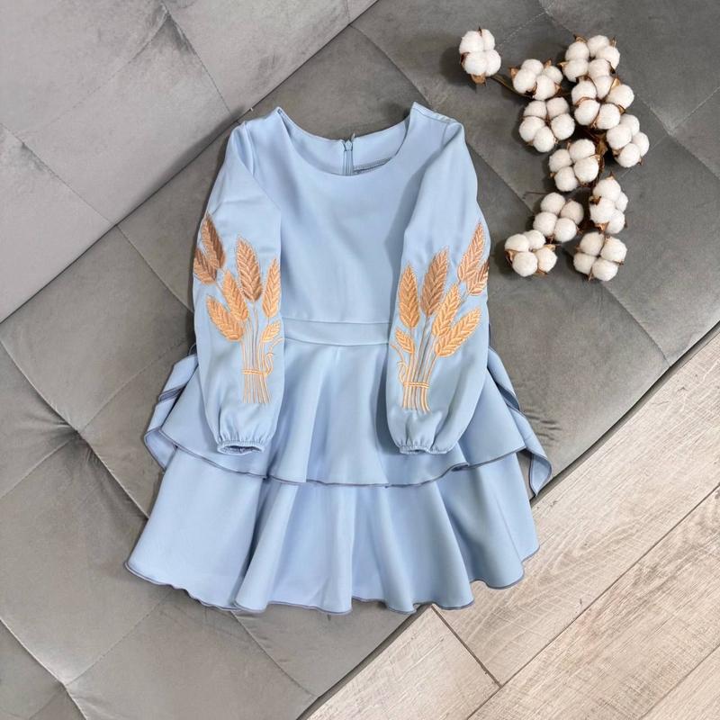 💕Платье Пшеница, вышитое. Ткань костюмка-Барби. Не линяет, есть застежка сзади для удобства. На рукавах красивая вышивка штоков.Манжет на резиночке. Есть поясок завязать сзади. Производитель Украина. 📐Замеры: 110-дл. 54 / полуобхват 27 / Рук. 39 116 - длин. 60 / полуобхват 28 /рук.42 122 - длин. 61 / полуобхват 31 /рук.43 128 - длин. 63 / полуобхват 31 / Рук. 45 🏷️1015 грн