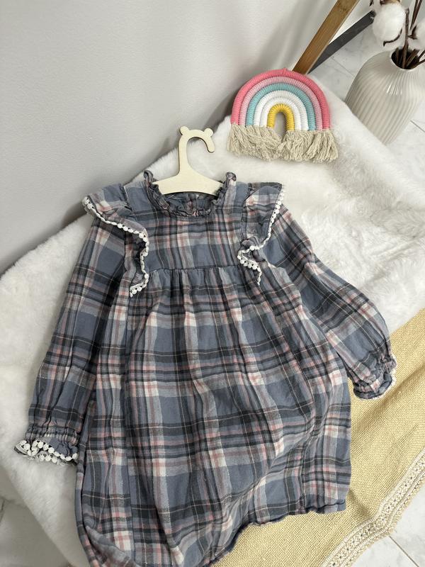 Классное платьице в клеточку с рукавом на 4-5 лет, состояние идеальное