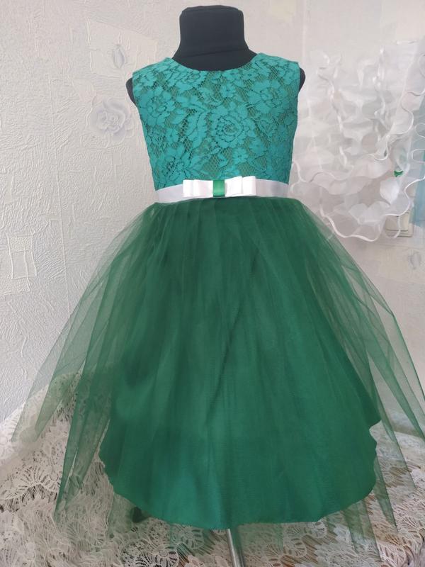 Есть два варианта зеленого платья. Так что можете выбрать, какое платье вам по душе. К платью можно предложить перчатки зеленого цвета с камушками и бантиками. Рукавички = 150 гривень. Есть шубки - накидки белые детские из искусственного меха с балабончиками). Шубки можно для утепления или для создания образа)). Цена шубки 550 гривен. Есть подюбник-круг для пышности юбочки - 200 гривен. Еще есть коронка в прическе с зелеными камушками. Цена 150 гривен. Фото всых аксессуаров смотрите на последнем фото. Платье на девочку 4-6 рочки. Сзади шнуровка. Замеры: максимально по груди 66 см (полуобхват 33 см),шнуригочкой затягивается до 54 см (полуобхват 27 см) Длина платья 70 см от плечика. Сзади шнуровка. Это очень удобно, когда можно самостоятельно отрегулировать объем по груди и по талии. Вы не будете волноваться, что платье будет мало, или большое. Можете надеть его не один раз, если платье для Вас еще с запасом)). Юбка состоит из 3 слоев ткани: нижняя подкладка + 2 яруса фатина. Рекомендую взять подюбник-круг для пышности юбочки. Это детский вариант подюбника на 2 колечка внизу, а сверху он- на резиночке. Подюбник дает возможность свободно ходить- дает простор для ходьбы, танца, или если девочка любит кружиться), тогда она не наступит на низ юбочки + еще расширяет немножко юбочку внизу- поэтому платье будет выглядеть более пышным. Тем более подюбник можно использовать не только под данное платье. Он просто универсальный) Оплата на карту ФОП, можно накладной оплатой по предоплате 100 гривен. Безопасной доставкой с удовольствием отправляем, если Вам подходит все по замерам. Ибо какой смысл отправлять, тратить Ваше и мое время, если платье не подходит сразу по замерам?)) платьячка разглажены, смотрятся товарно, поэтому не хочется их жмать в посылки, а затем снова гладить. Поэтому перед тем замерьте девочку и сравните с замерами, которые указаны в объявлении.