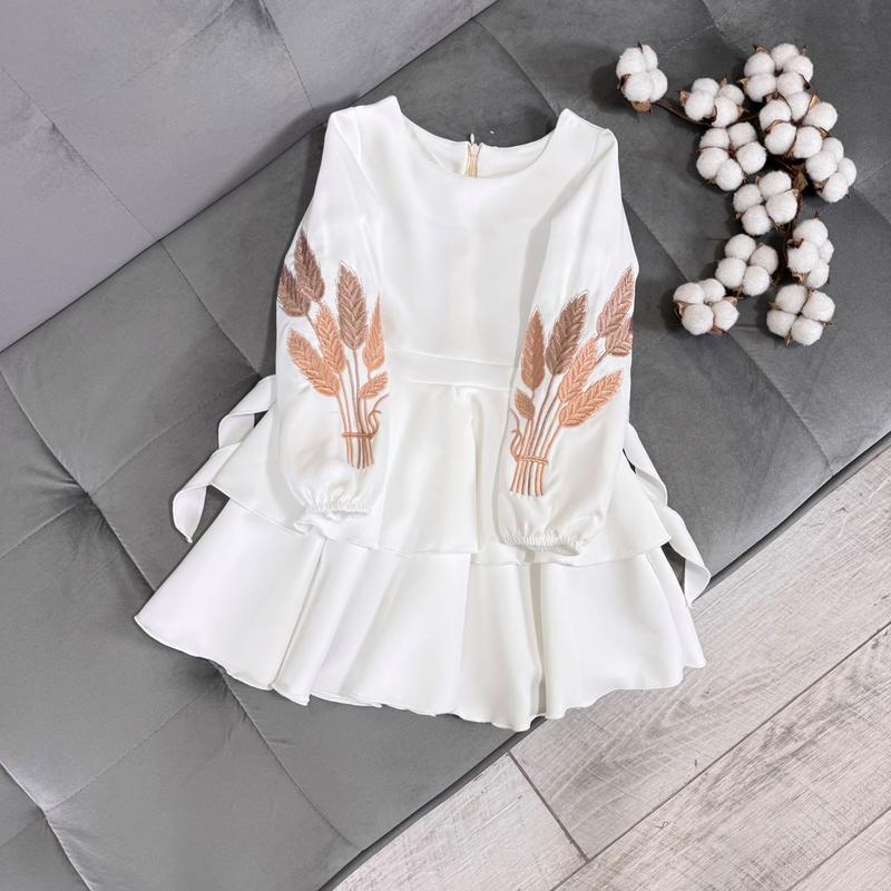 💕Платье Пшеница, вышитое. Ткань костюмка-Барби. Не линяет, есть застежка сзади для удобства. На рукавах красивая вышивка штоков.Манжет на резиночке. Есть поясок завязать сзади. Производитель Украина. 📐Замеры: 110-дл. 54 / полуобхват 27 / Рук. 39 116 - длин. 59 / полуобхват 28 / Рук.41 122 - длин. 61 / полуобхват 29 /рук.42 128 - длин. 63 / полуобхват 31 / Рук. 45