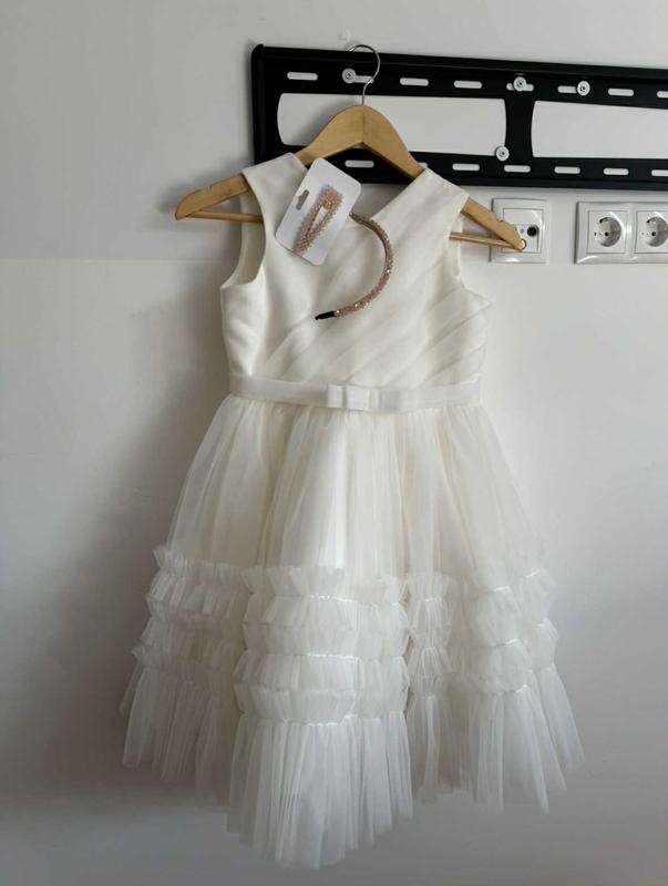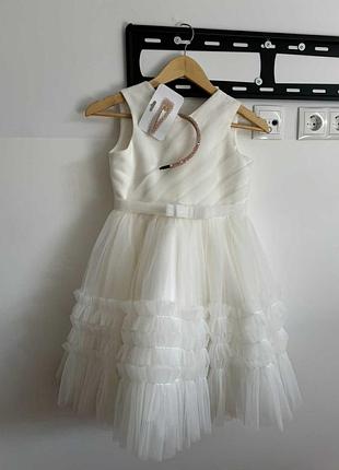 Мега стильна нарядна сукня від бренду сюзі) Одягалася на весілля! В прекрасному стані! Буде від 8 до 10 років. Довжина 77 Груди півобхват макс 37 Пояс 34(стягується)