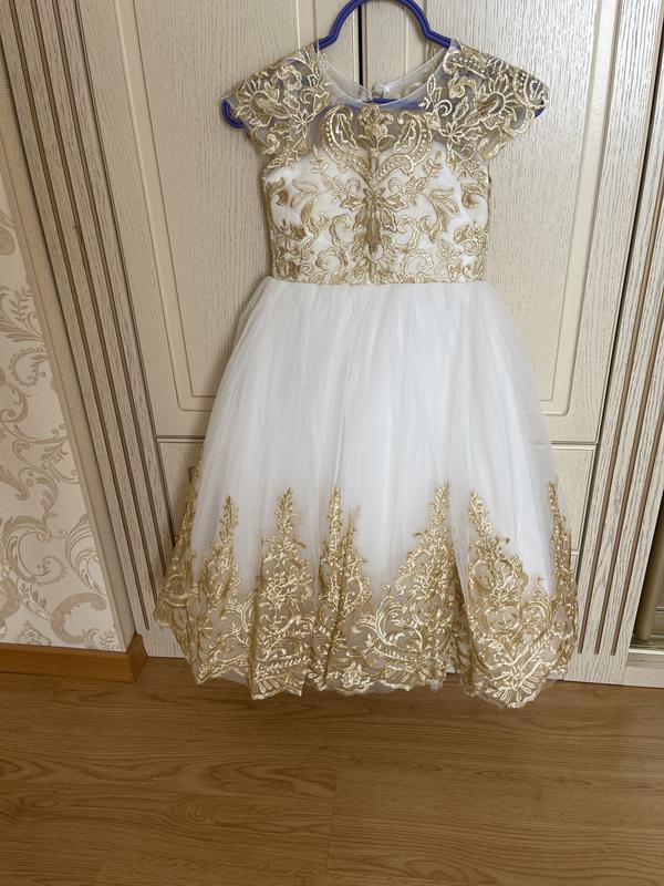 4 В новому стані, одягнена раз на подію) дуже красива, ефектна і при цьому ж стримана) Груди-30 Талія-28 Довжина топа-25 Довжина спідниці-60 Загальна довжина сукні-85 Болеро хутряне купували під сукню- якщо потрібно- покладу в подарунок 🎁