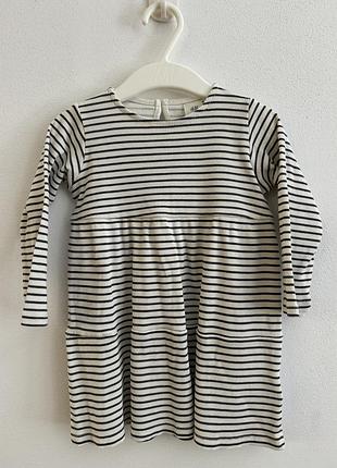 Сукня в смужку для дівчинки від бренду H&M. Розмір: 80 (9-12м) Матеріал: 100% коттон Колір: чорно-біла смужка Нова, не вдягалась.