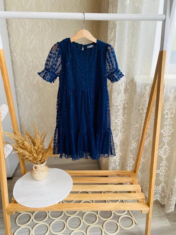 Стильна синя сукня next на 4-5 років. (Заміри: довж 63 см , шир 31 см) Стан ідеальний. 💰Ціна - 280 грн.