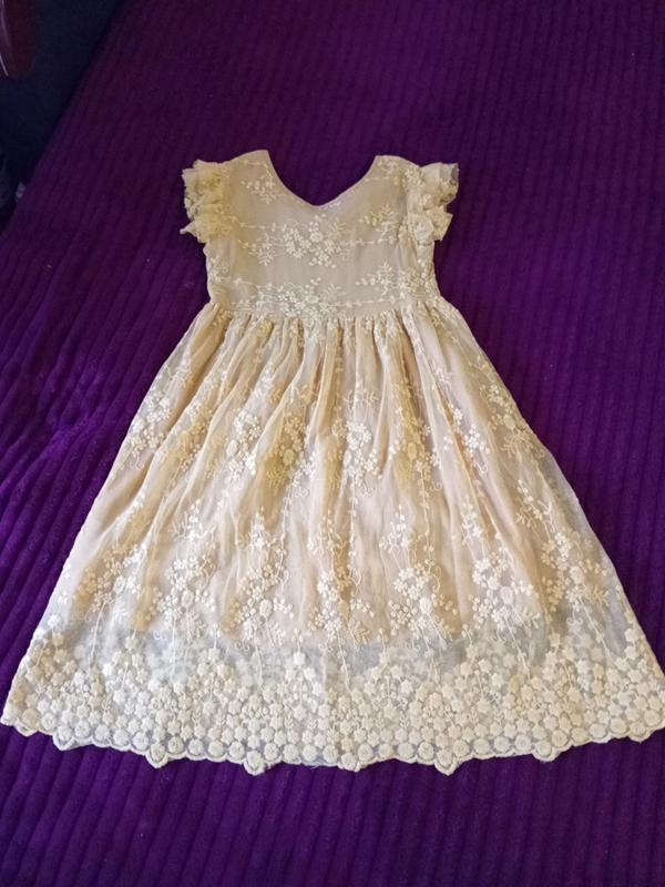Платье новое одевали один раз в день рождения и то только дома, размер 128-140, если за колено то можно на 128 выше колена - 140, цвет такой как на втором фото, гран, нежно смотрится, если что-то ищете, щадяте, потому что не все есть на шкафу, имеет много детской одежды и обуви при заказе нескольких скидки