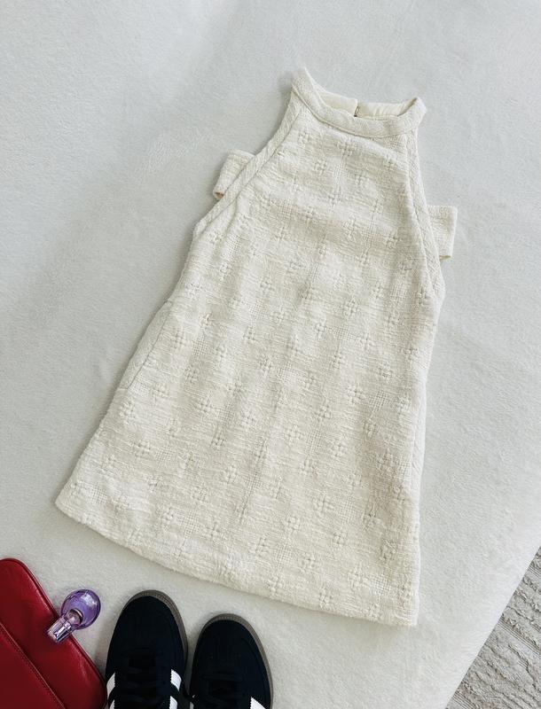 Твідова сукня молочного кольору від Zara Розмір 10р на зріст 140 см По грудей 33 см Довжина 67 см Є бокові кишені та підкладкм