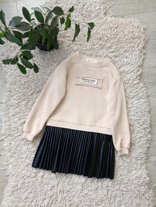 Красивое и стильное платье от mimi book. Имитация плиссированной юбочки из эко кожи и свитшота. Прямой крой. Идеальный вариант для школы. Размер 116-122