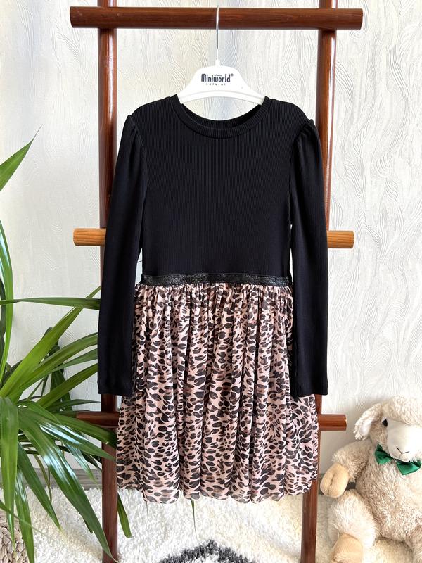💫 сукня з текстурованої тканини в клітинку та обʼємним комірцем від george на 5-6 років,...