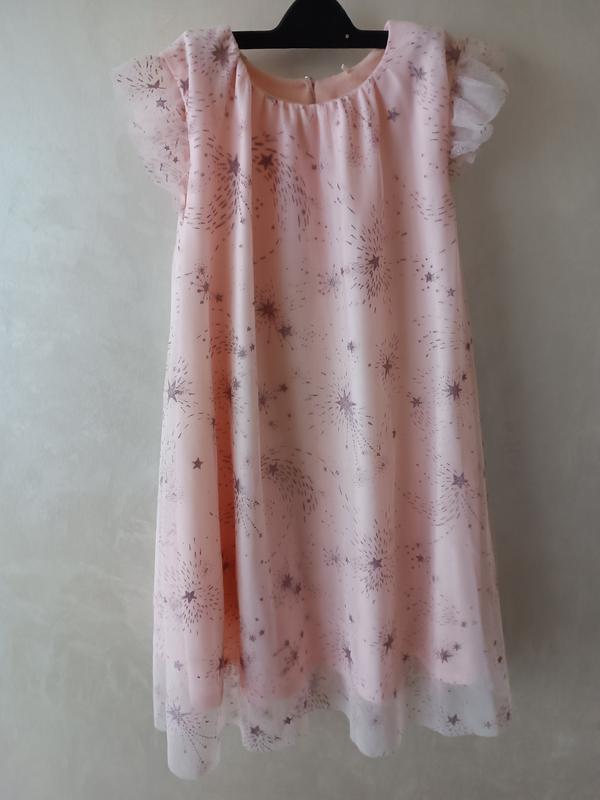 Платье на 6-7 лет. Очень красиво смотрится, без нюансов, одевали пару раз. Имеет двойную подкладку.