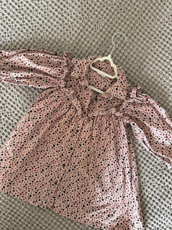 Стильна сукня ніжно-рожевого кольору з квітковим принтом. Виконана з м’якого вельвету, що дарує комфорт та затишок у прохолодну пору року. Має зручний крій, який не сковує рухів, та підходить як для щоденного носіння, так і для святкових випадків. Заміри: Довжина 54 см В грудях 36 см Довжина рукава 35 см