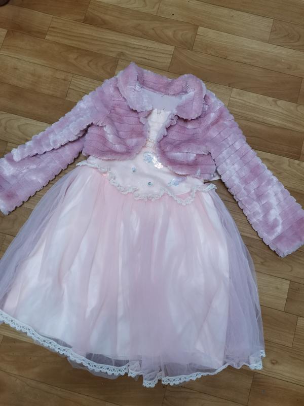 Нарядное нежное платье персик. В хорошем состоянии. Замеры на фото. В подарок Болеро меховое.