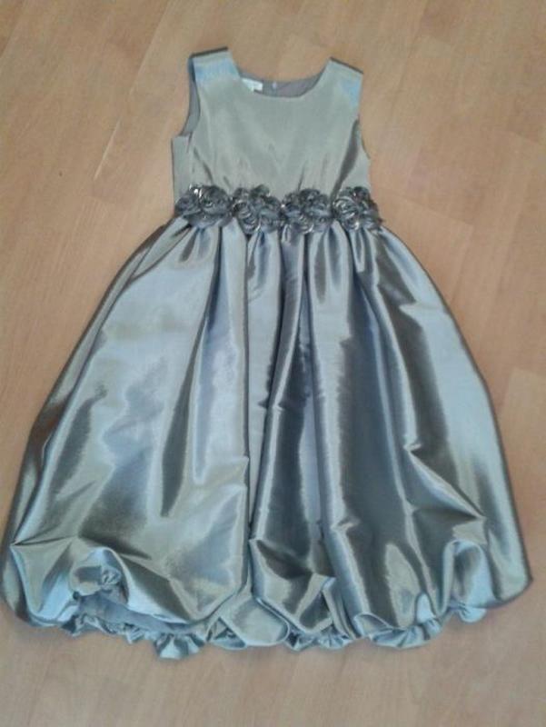 Продаю красивое праздничное платье WOJCIK. Отменное качество, красивая модель, идеальное состояние. Эта марка не нуждается в рекламе. Размер указан 128, реально можно носить и при росте 135. Замеры: длина платья 83 см., полуокружность груди 35 см. По спинке молния до талии, на талии большой бант. Юбка - баллон. Цвет - стальной. Платье полностью на подкладке.
