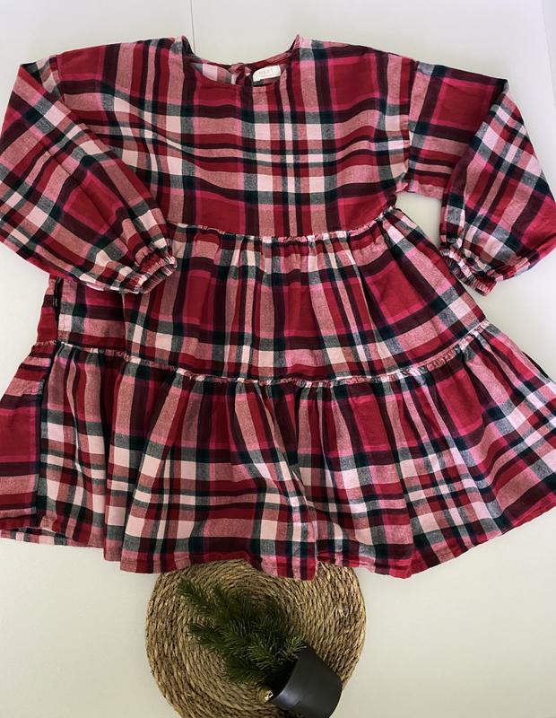 Неймовірно красива ярусна сукня Next в клітинку з кишенями на 6-7 років, в ідеальному стані 🥰 Довжина від плеча 61 см Ог 40 см Довжина рукава від шиї 51 см Ширина плечей 42 см