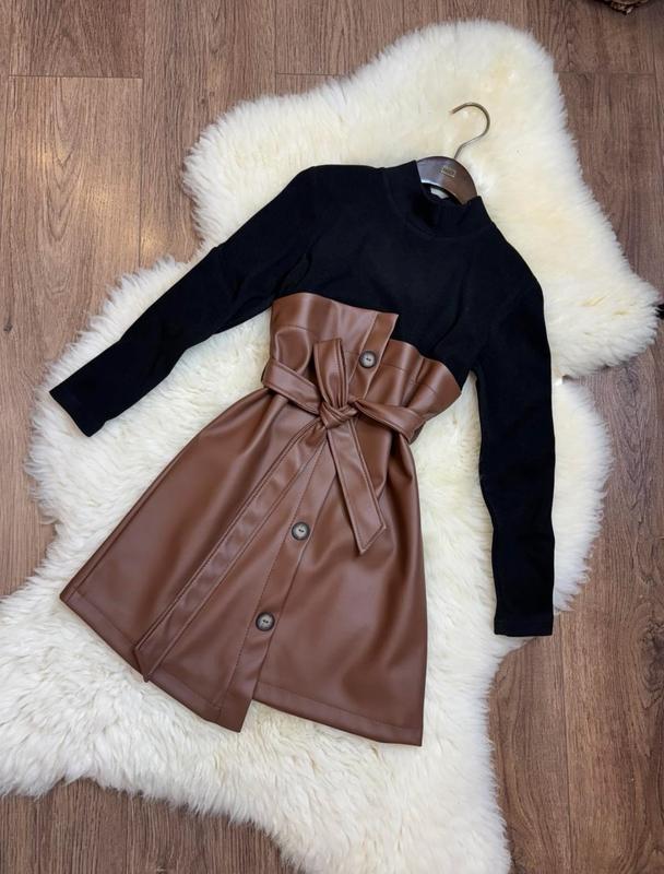 через кнопку купить только полная оплата!!! Любимая моделька платья Стильное и модное платье ткань термотрикотаж+эко кожа на замше украшен декоративными пуговицами есть поясок РЕКОМЕНДУЮ! 🎈140(1 шт)-длина 71,пог 37,рукав 45 🎈152(1 шт)-длина 76, пог 40,рукав 51 🎈158(1 шт)-длина 79, пог 42,рукав 53 🎈164(2 шт)-длина 82,пог 44,рукав 55 Греб