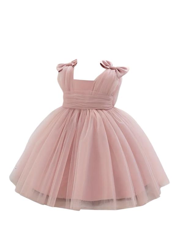 Сукня для дівчинки без рукавів з відкритими плечима. Рожевого кольору з бантиками.
